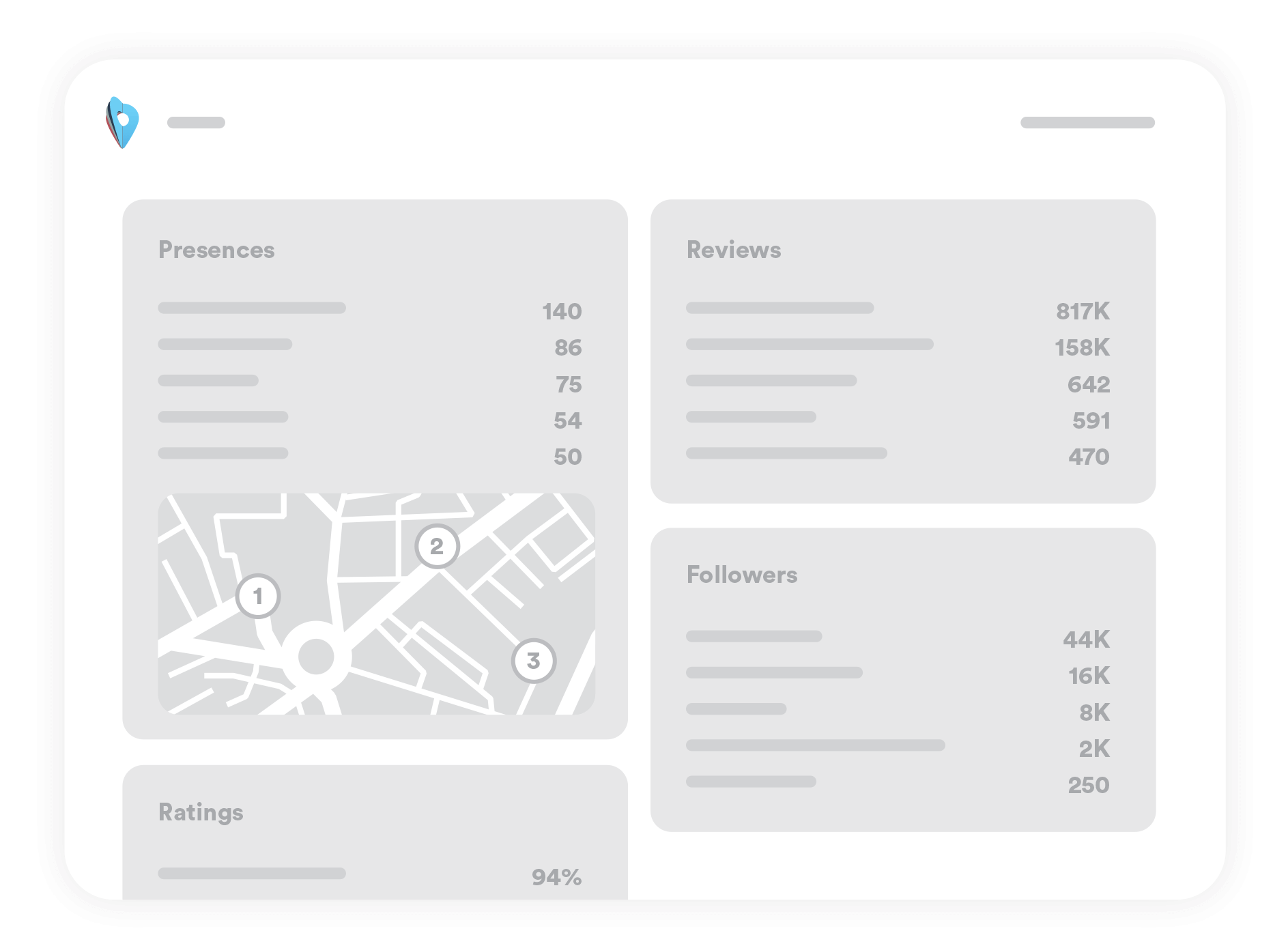 The only tool where you can manage all your listings and reviews, while also getting new reviews, posting to your social channels, managing your search rankings, generating social proof, connecting with your influencers and monitoring your performance and how you compare to competitors.