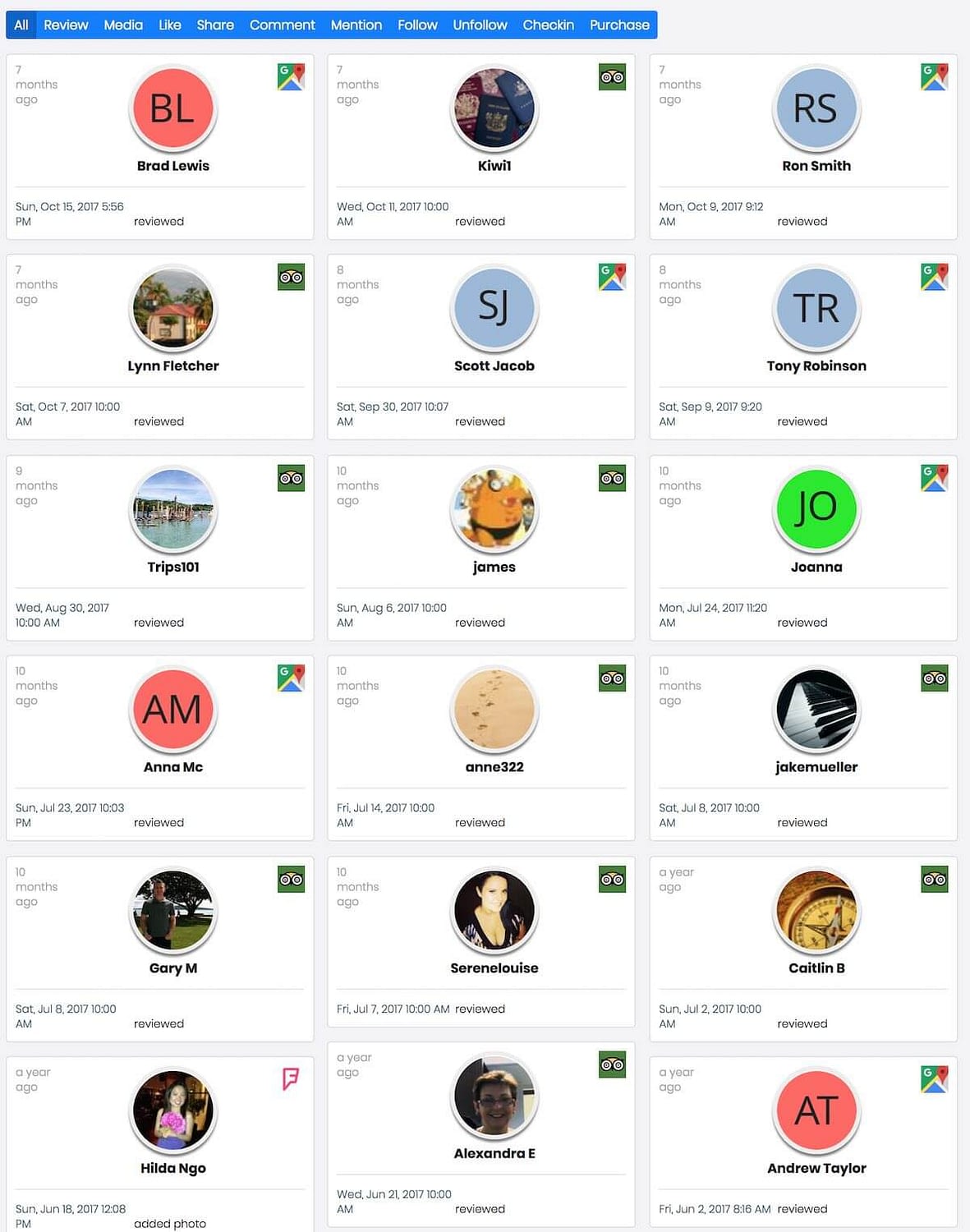 - See who has reviewed, rated, commented, liked, shared, followed, un-followed and more